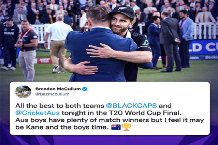 সামাজিক যোগাযোগ মাধ্যম টুইটারে এক টুইট বার্তায় ম্যাককালাম লিখেন, আজ রাতের টি-টোয়েন্টি বিশ্বকাপের ফাইনালে নিউজিল্যান্ড-অস্ট্রেলিয়া উভয় দলের জন্য শুভ কামনা। অস্ট্রেলিয়া দলে অনেক ম্যাচ উইনার আছে। তবে আমার কেন জানি মনে হচ্ছে এবার কেন (কেন উইলিয়ামসন) ও তার বাহিনীর সময়।’