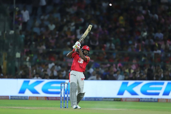 দ্বিতীয় উইকেটে ৫৬ রানের জুটি গড়েন গেইল ও আগারওয়াল।ইনিংসের নবম ওভারে ২৪ বল থেকে ২২ রান করে আউট হন আগারওয়াল।তৃতীয় উইকেটে গেইলকে সঙ্গ দেন সরফরাজ খান।এ সময় ক্রিজে খোলস ছেড়ে ভয়ংকর ব্যাটিং শূরু করে গেইল।